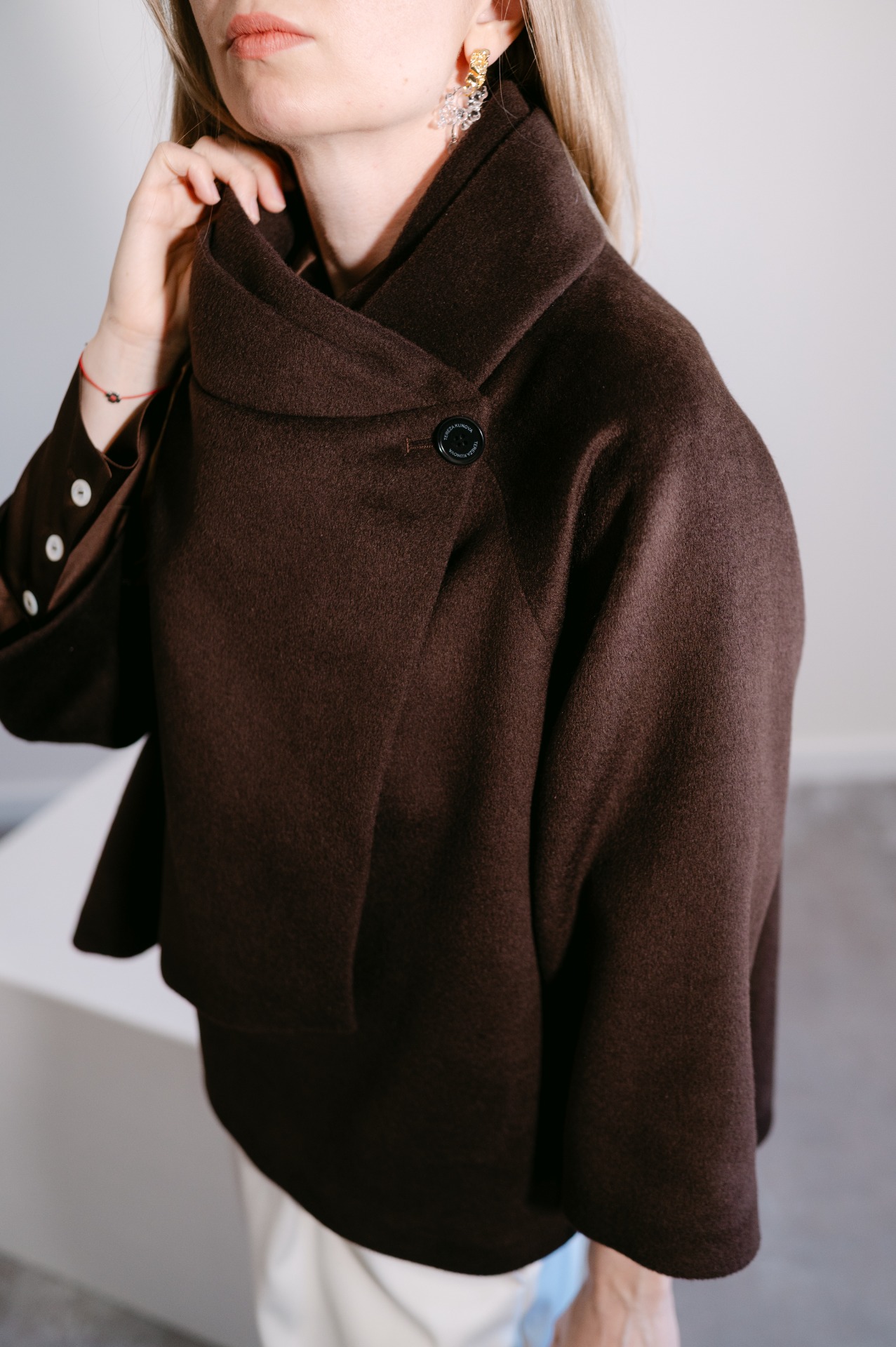 bunda s 3/4 rukávy je ušita z materiálu 38% kašmírová vlna, 62% vlna v různých barvách