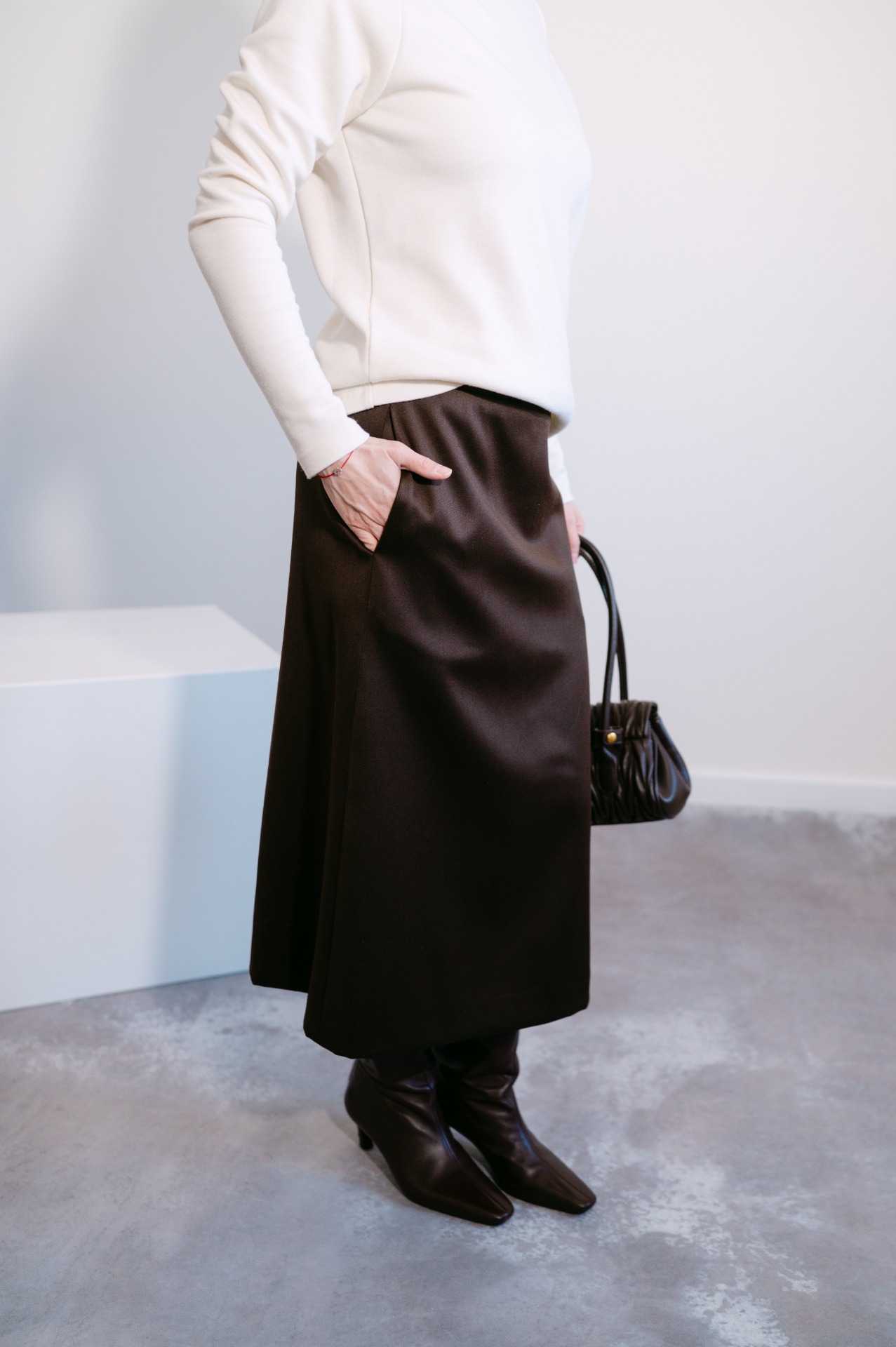 vlněná sukně je ušitá z velmi kvalitního a luxusního 98% vlněného gabardénu a 2% elastanu , který mírně pruží, je měkký a příjemný na dotek